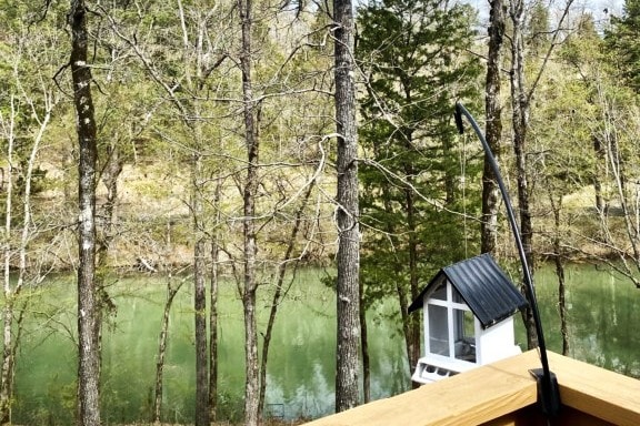 Cozy cabin provides tranquil & natural scenery away from the city lights b& only a short drive to all Hot Springs has to offer. Our cabins have everything you need to feel at home. Kayaks, located at our private dock, are yours for the day for a small fee. First come, first serve. Fire pit near cabin 1.