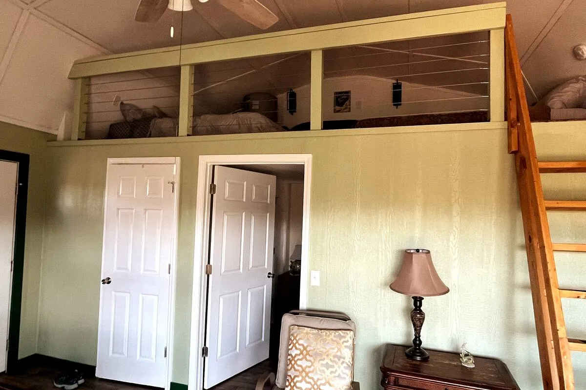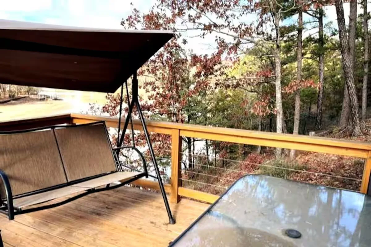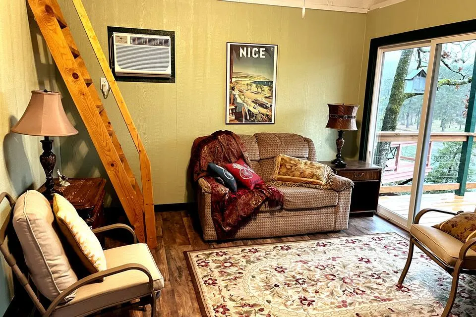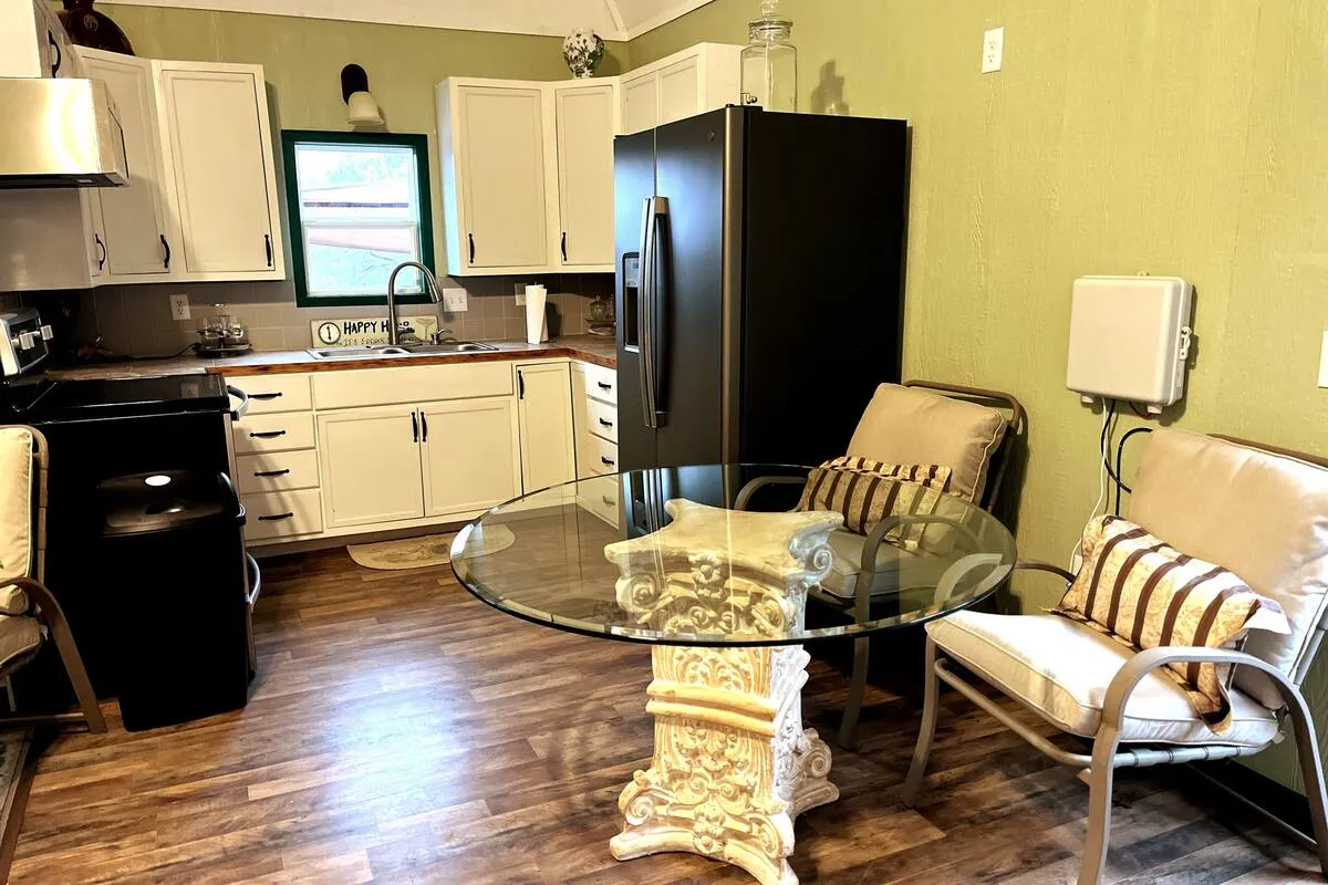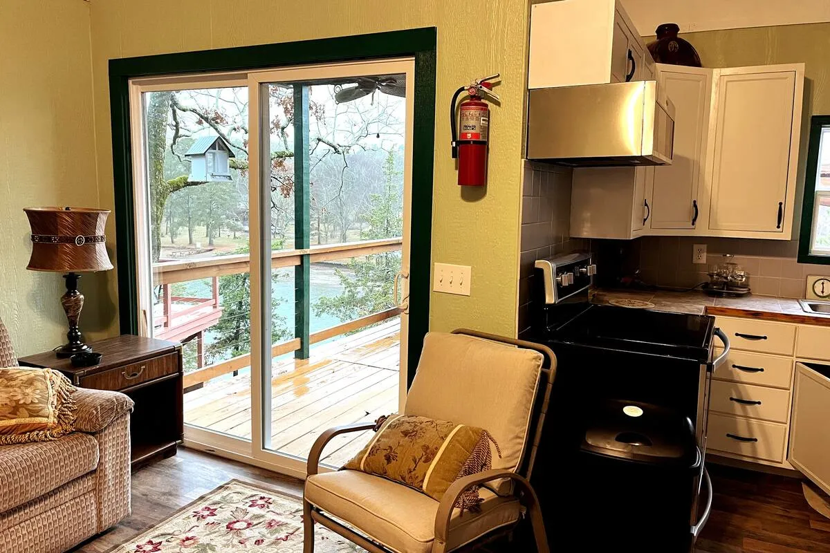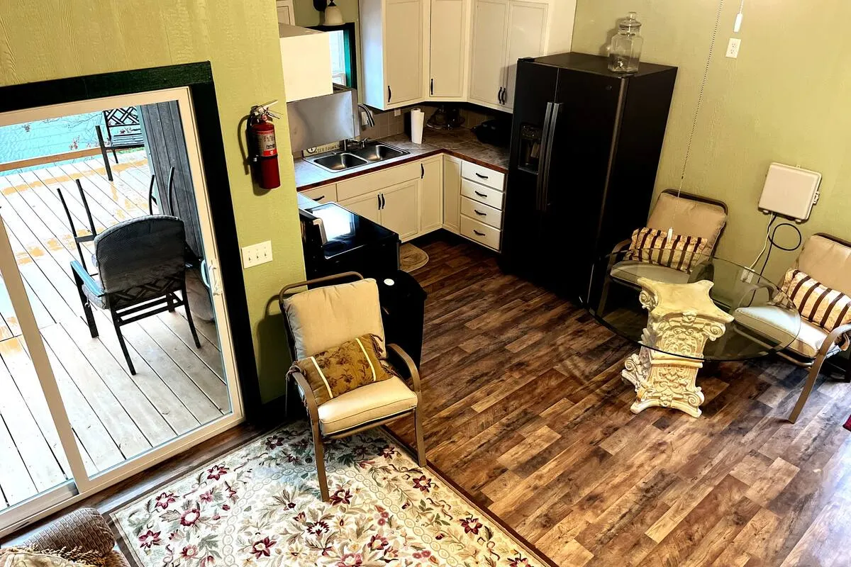 August-13 2024We had a beautiful view from the cabin, enjoyed the big tube, swam in the lake and overall enjoyed out stay. I gave 4 stars because I personally I think it's a bit overpriced for what it is. You pretty much pay for the location. Another reason for 4 stars is that the thermostat (window unit) didn't keep up. It's located in the living room part, so the bedroom was very hot to sleep in. Last reason for 4 stars is dust. Once you sit on the old couch, there's a cloud of dust coming from it. Luckily we brought our allergy meds.