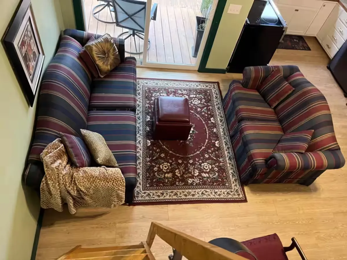 Alexa Included. 50"-55" TV downstairs, 32 " Tv upstairs w/Prime, Youtube, & Netflix. Downstairs bedroom w/1queen & 2 queens in loft. Partially covered deck w/seating.