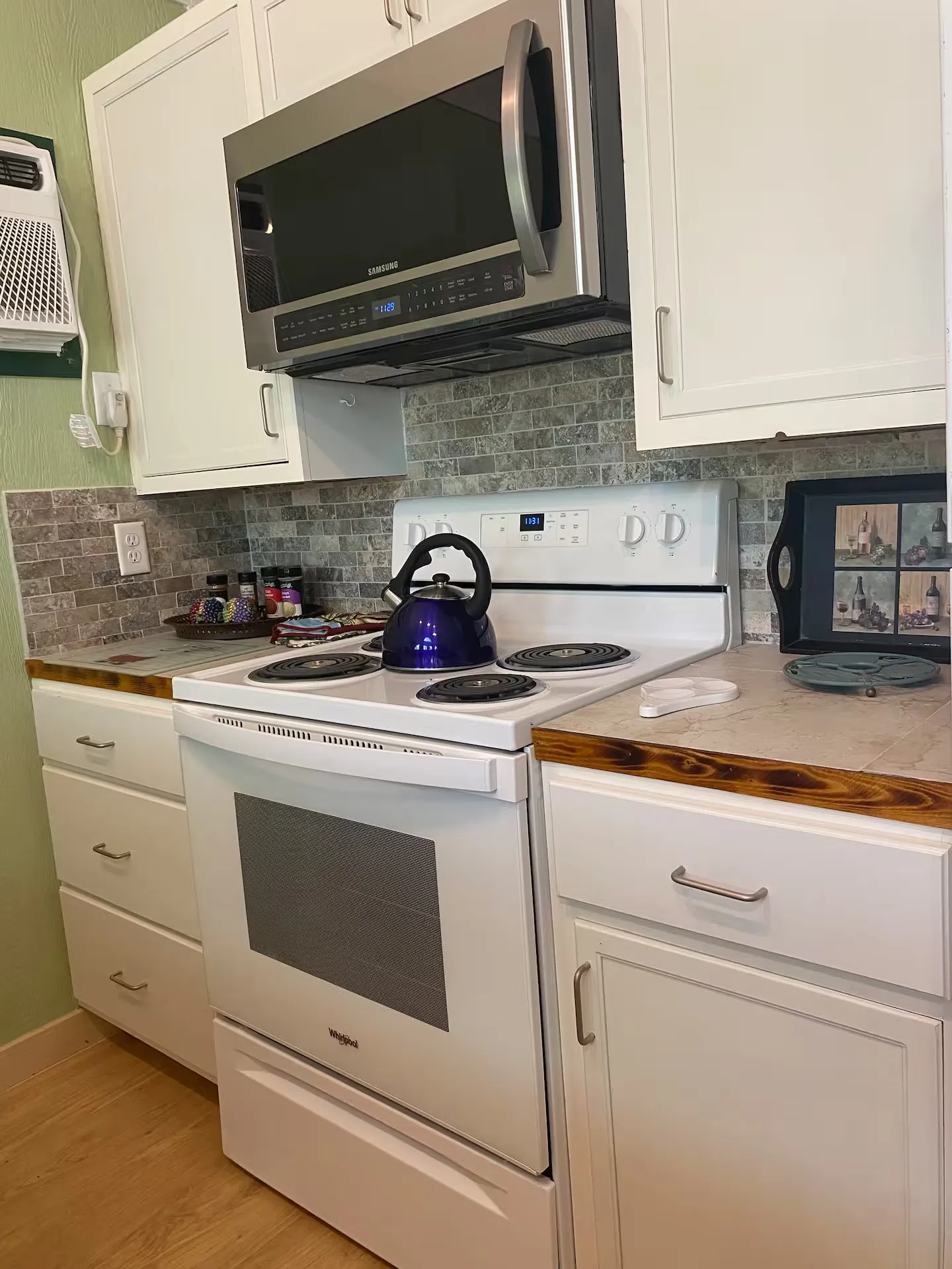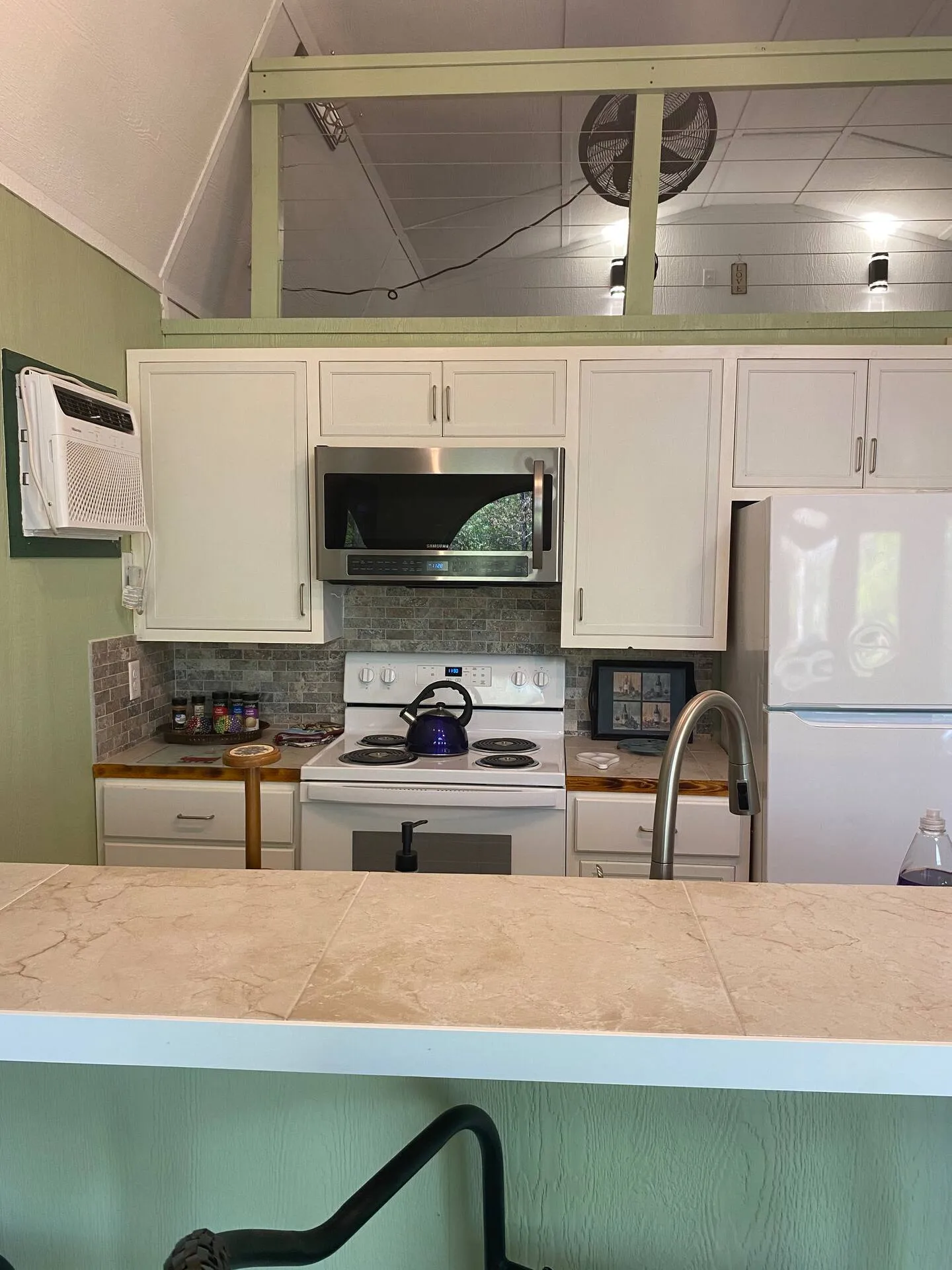 July-12 2023We loved being on the lake. We brought kayaks and went kayaking everyday as well as swimming in the lake. We were personally greeted by several people ensured everything was OK. I appreciated the real tilework in the bathroom and kitchen, rather than a prefab fiberglass shower. We found a lovely homestyle café, Sunshine Café minutes away and had both breakfast and lunch there. Also bought some fresh corn in their shop. Loved the private back porch and spent a lot of time on it. Will definitely be back.