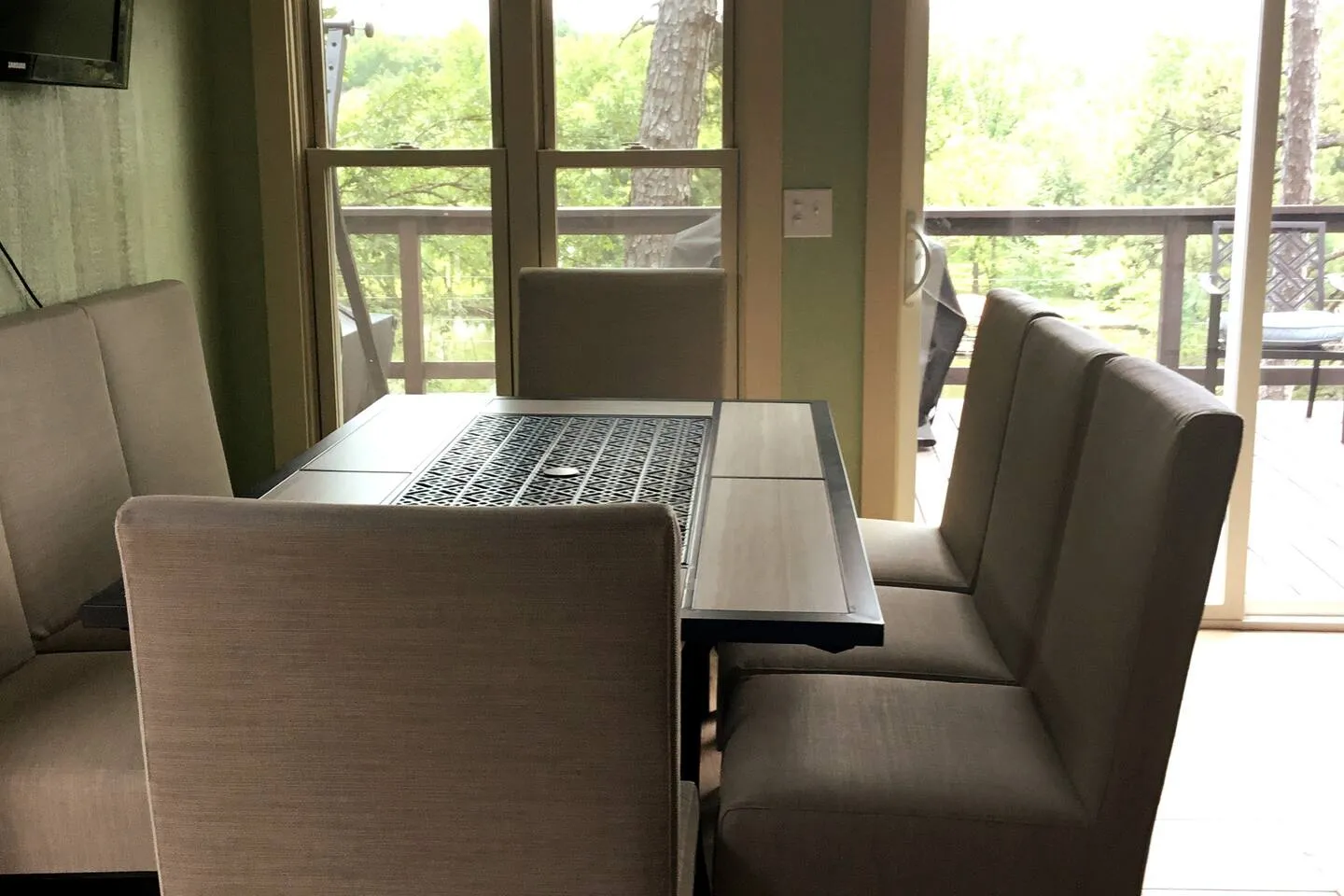 July-10 2024We stayed for the 4th of July and had a great time. The view from our cabin was amazing and we enjoyed spending time outside cooking and playing games. We do wish we had a washer and dryer at the house but other than that they had everything else you would need. We got two airbnbs #8 and #9 with a shared a patio and that was perfect! There is a slight walk down and up to the dock ramp but it’s doable. We put our boat in at a ramp about 20 minutes from the cabin and docked it at the dock every night - that’s just first come first serve so fingers crossed you find a spot! The kids loved making s’mores on the patio and all the outdoor activities.