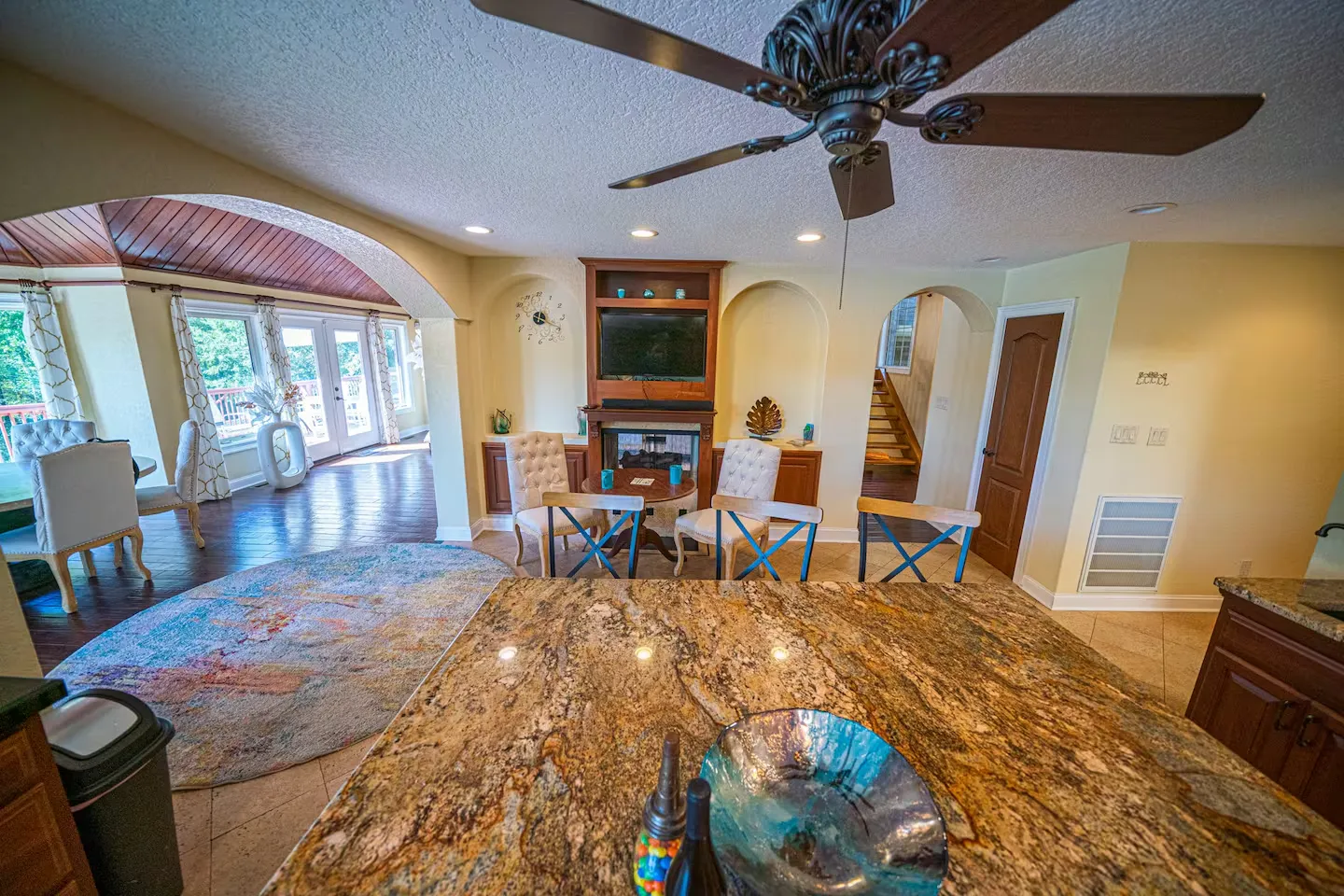 Step outside to enjoy the outdoor firepit (decorative only; please no wood or s'mores), as well as private balconies, expansive wrap-around decks (mostly covered) with BBQ grills, and a boardwalk along the water’s edge. The property also boasts a fixed, covered boat dock and ample parking—2 car garage plus space for 4 to 6 cars in the driveway.