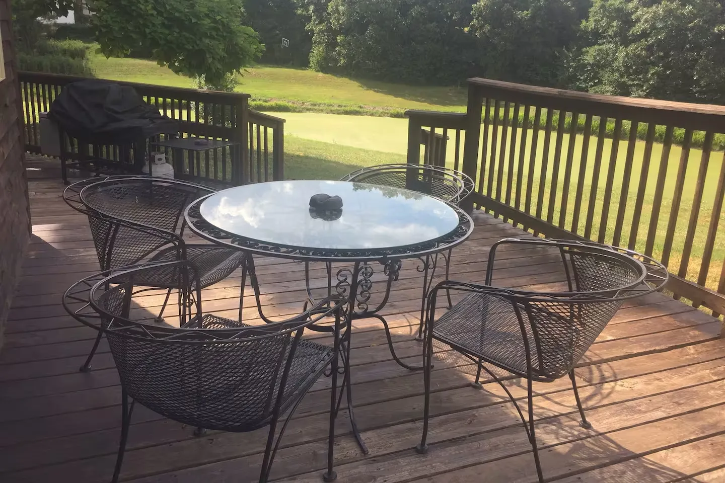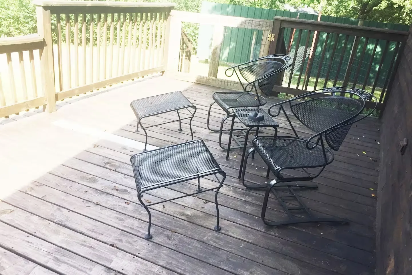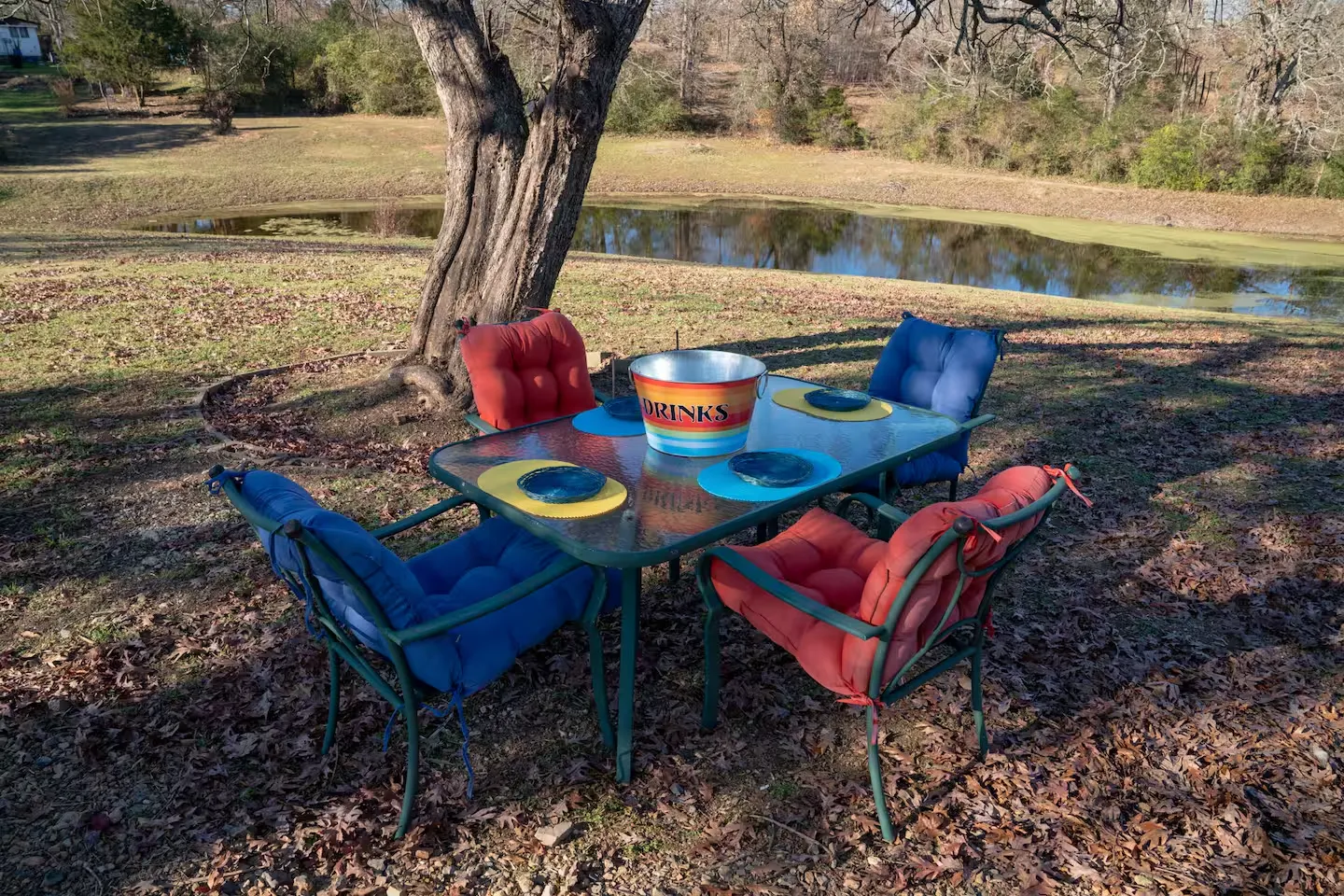 Great place on 3 Acres for a Mini Vacation or Family Retreat. 3 bedrooms w/8 beds. 3 full baths- no need to wait in line! Fully Stocked Kitchen for home cooked meals! Eat or hang out under a Covered Patio or Wrap-around Uncovered Deck. Card Room in den for a Texas Hold 'em Tournament. Horseshoes, Volleyball, Basketball, & Soccer too. There's even a Pond w/a Pier for Fishing! Plenty of things to do for all family members. You will Love this Country Home! Dogs must be pre-approved when booking.