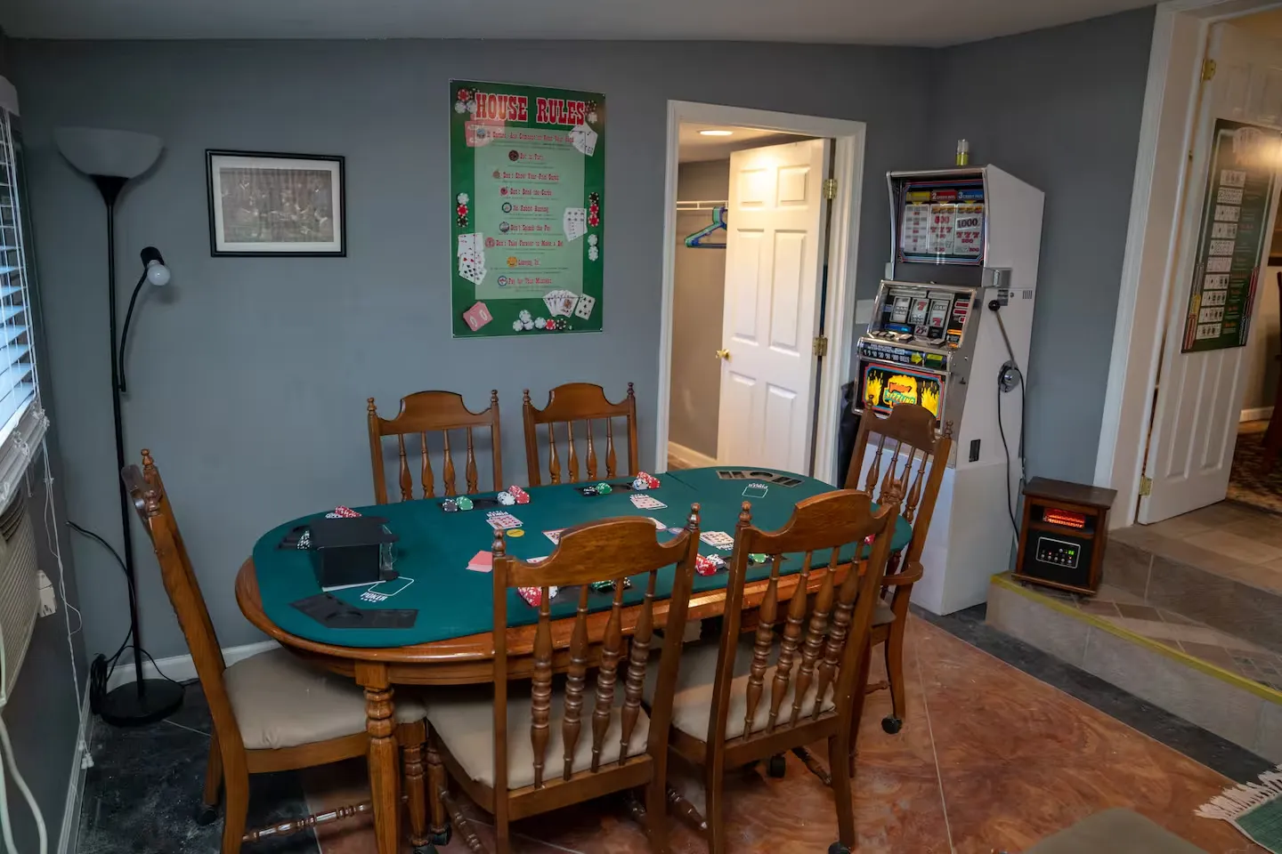 No Glitter, Silly String, Gum, Glue, Stickers, Paints, Crayons, Permanent Markers, Candles, or Fireworks allowed inside or out. In addition, No Smoking & No Events are allowed in the house. If your group does not follow these admonishments, there is an Additional Cleaning Fee, Plus Damages, added to your bill! No Cats Allowed! Your pre-approved dog(s) are welcome, with a $99 non-refundable deposit. Please clean up their poop!