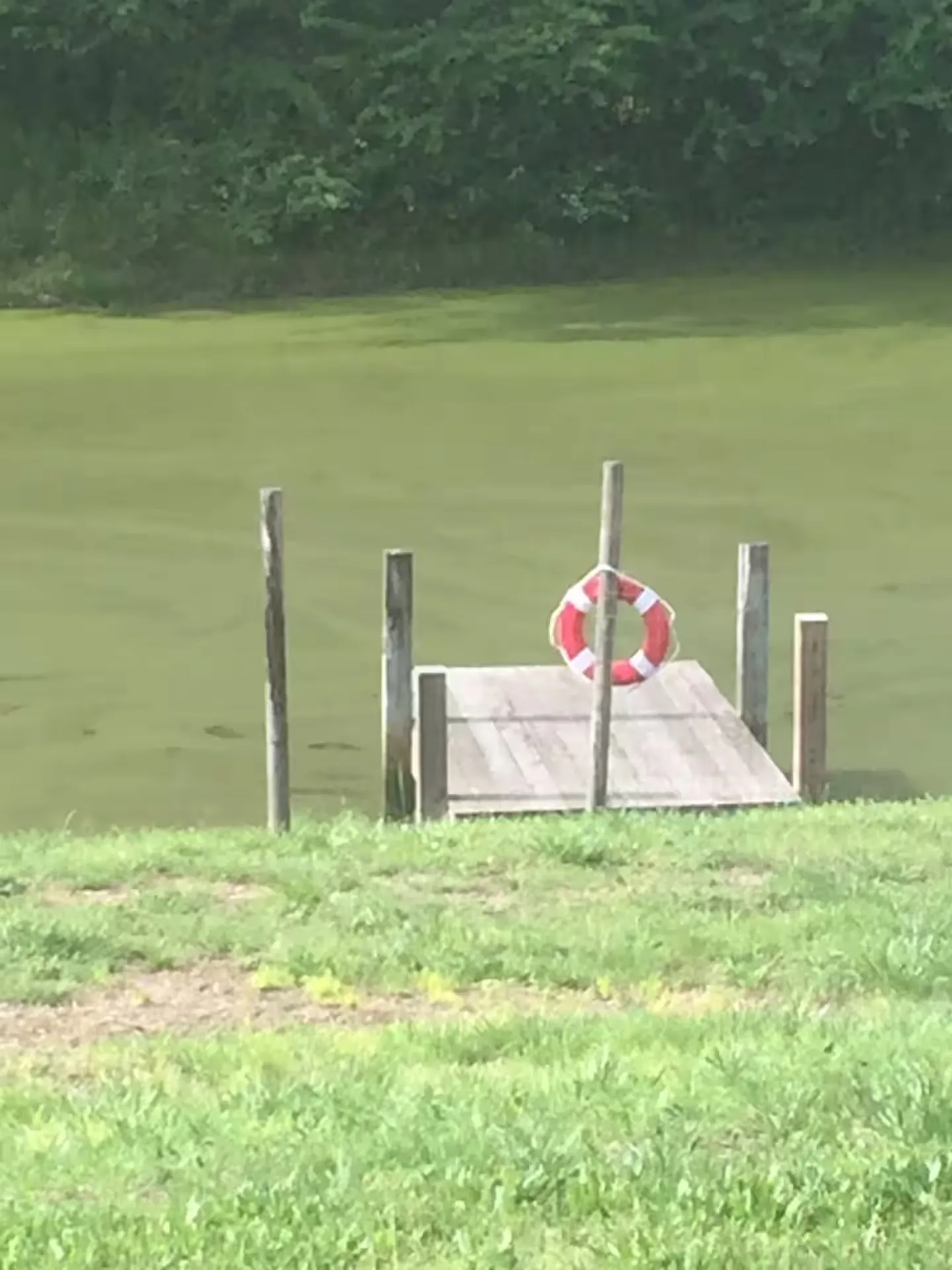 “There is an unfenced pond 50' from the back of the house. Stocked with fish, there is also a fishing pier.”